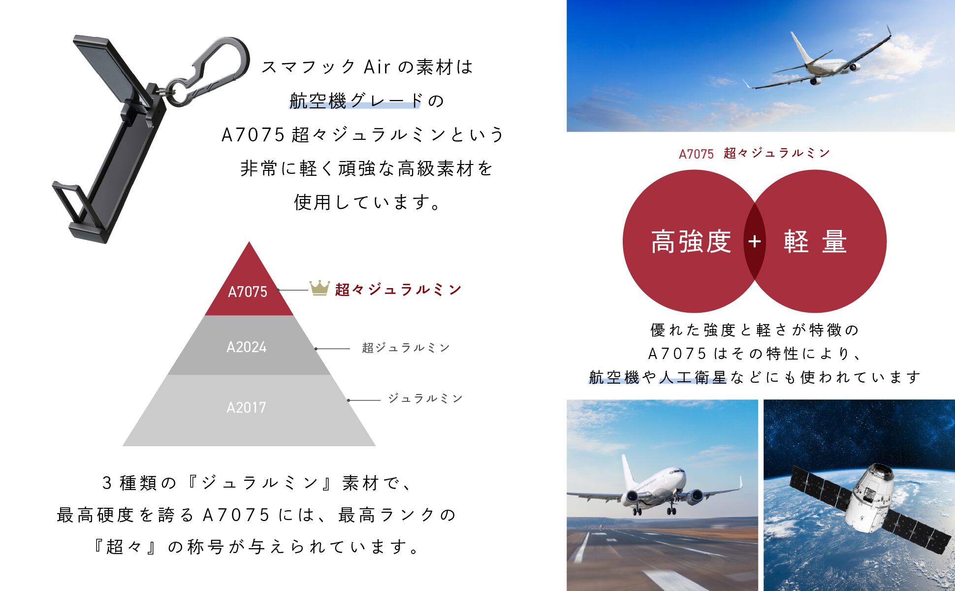 ✅ 航空宇宙グレード「A7075超々ジュラルミン」採用。強靭さと軽さ、その両立が常識を塗り替える!